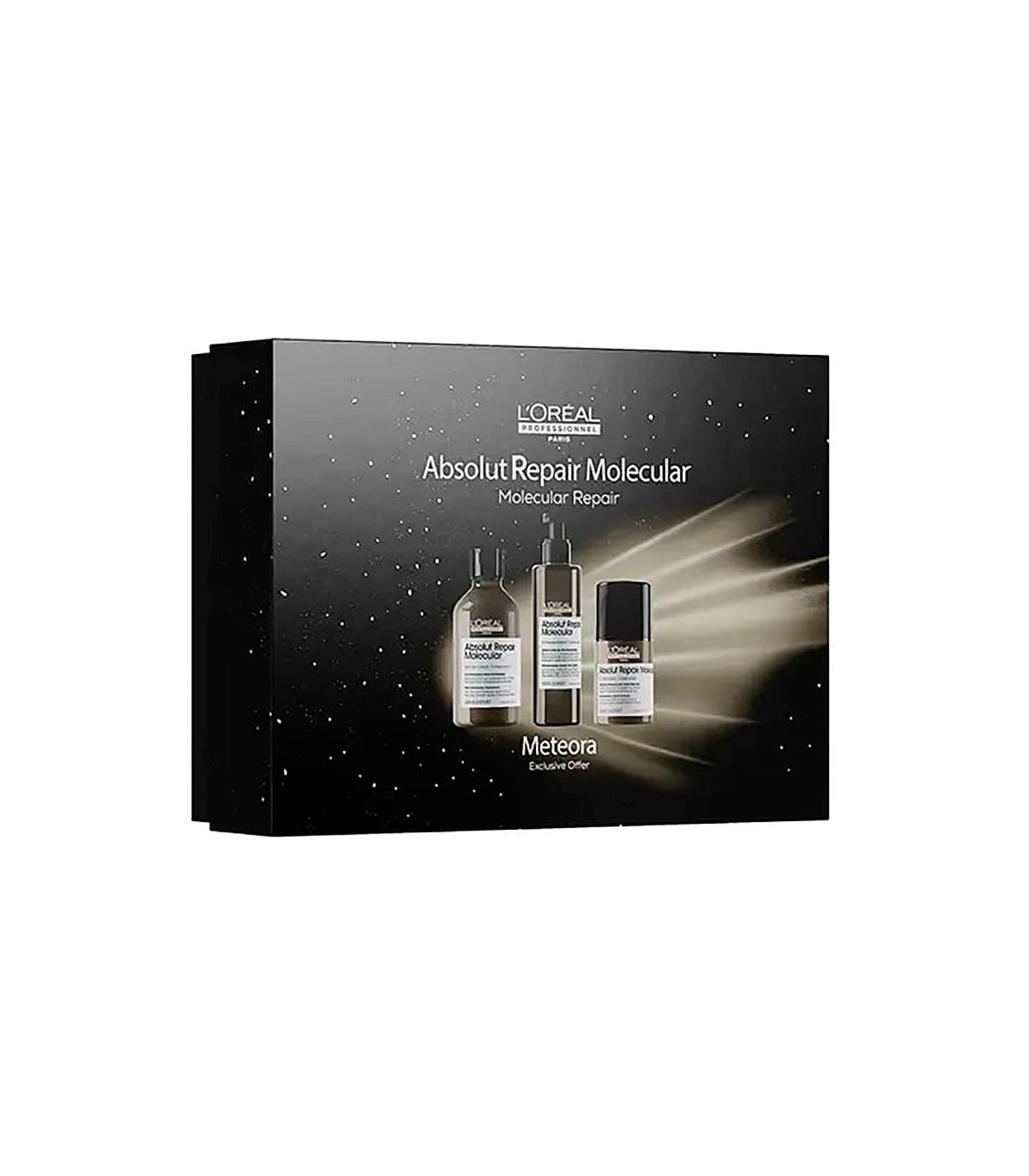 Se trata de un cofre de edición limitada (Trio Meteora 2025) de la línea Absolut Repair Molecular de L’Oréal Professionnel, dentro de la Serie Expert. Está pensado para ofrecer una rutina intensiva reparadora, restaurando la estructura molecular del cabello dañado, aportando fuerza, elasticidad y brillo.