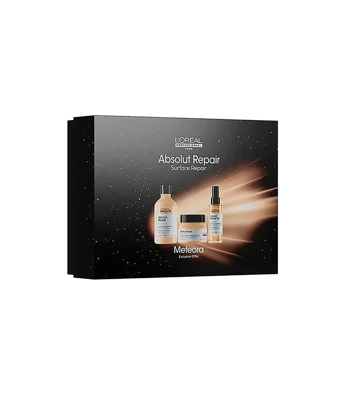 trío/cofre de edición limitada “Meteora 2025” de la línea Absolut Repair de L’Oréal Professionnel.